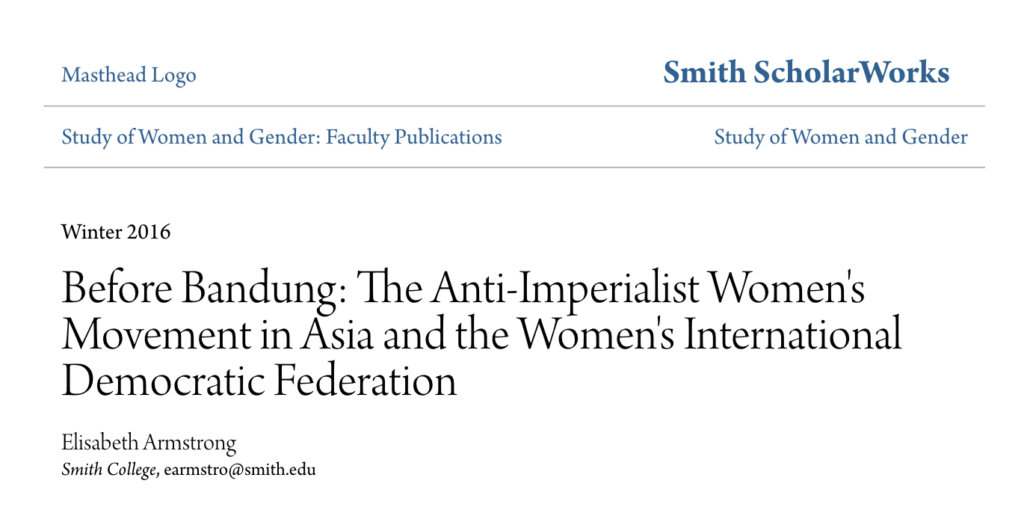 Before Bandung: The Anti-Imperialist Women’sMovement in Asia and the Women’s InternationalDemocratic Federation